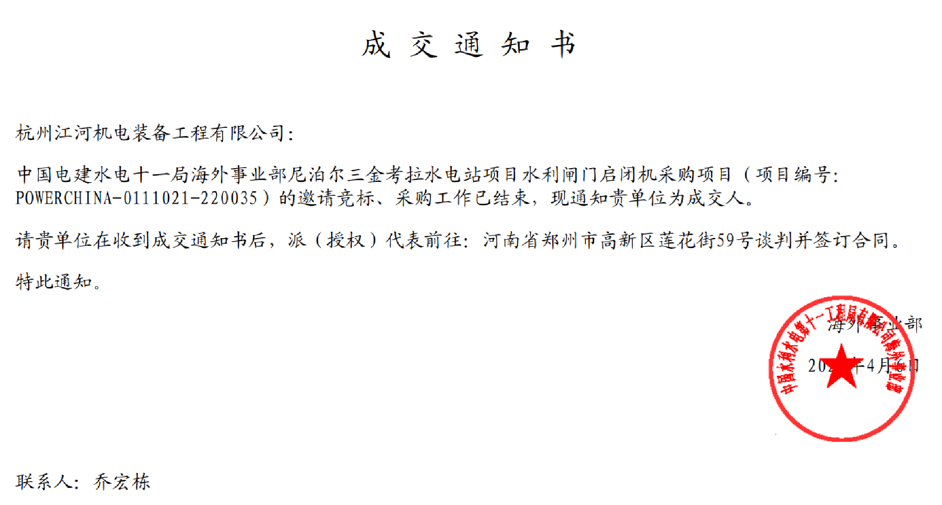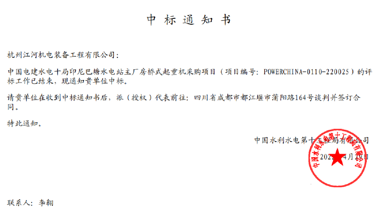 四月份以來,所屬杭州江河機電公司在全國多地疫情暴發(fā)的不利形勢下,通過公司上下的不懈努力,繼續(xù)擴大經營成果,在多個項目上收獲中標/成交通知書,為完成公司上半年的經營目標打下良好基礎。