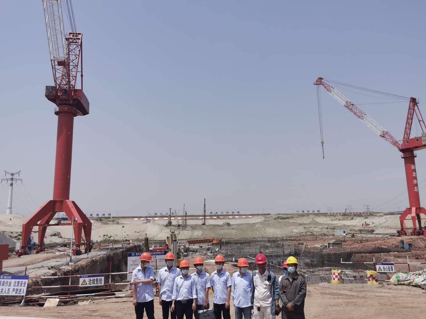 2020年05月19日湖北水總會同碾盤山建管局和當?shù)匕脖O(jiān)等部門對我公司生產的MQ600B和首臺MQ900B圓筒高架施工門座起重機(以下簡稱門機)進行了現(xiàn)場檢測和設備驗收。