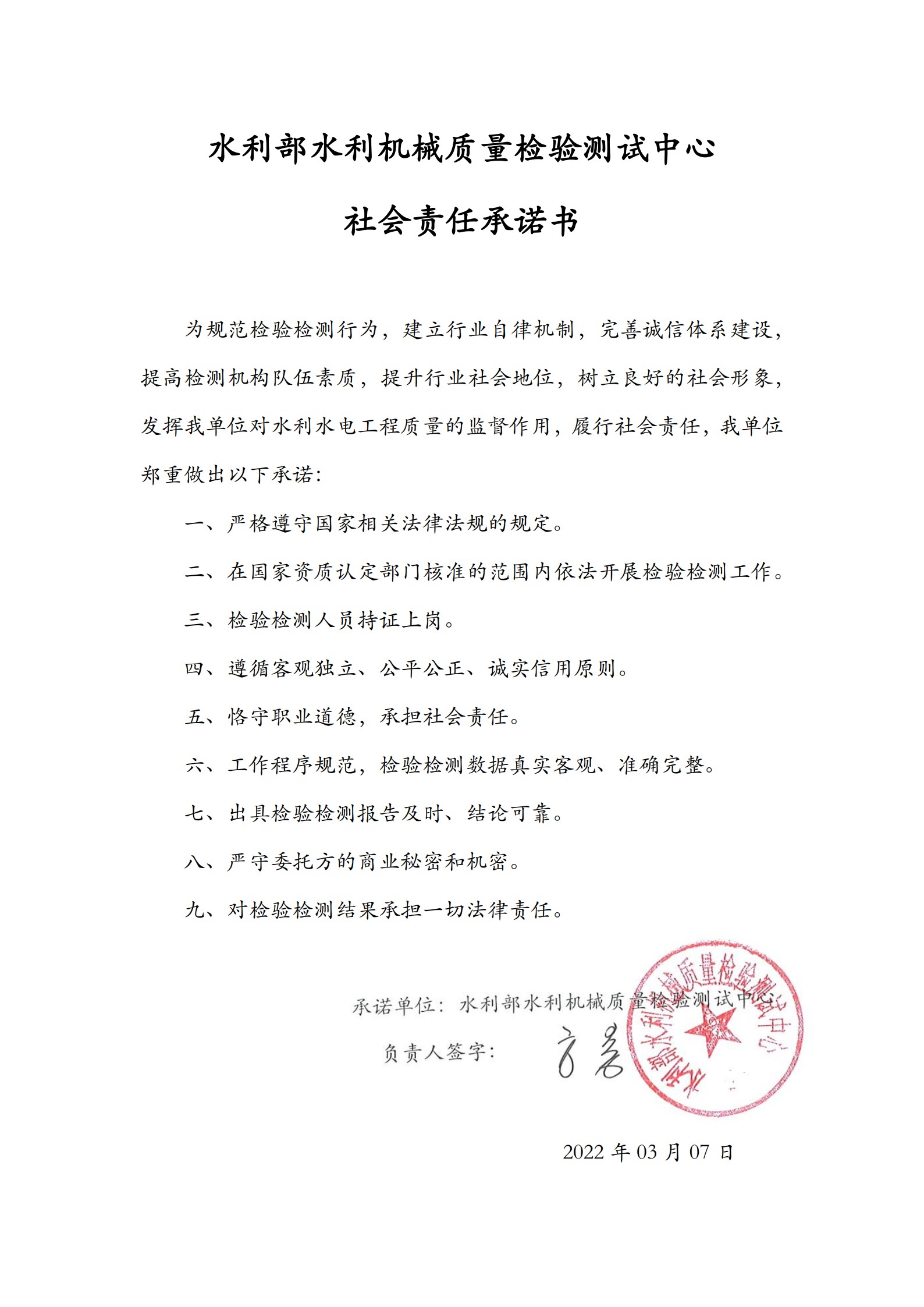 《檢測中心社會責任》承諾書