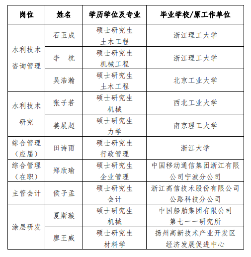 根據《水利部產品質量標準研究所2024年公開招聘工作人員實施方案》和事業單位公開招聘工作有關規定,現將我所2024年公開招聘應屆畢業生、社會在職人員擬聘用人員予以公示。公示期間,如有問題,請向我所反映。