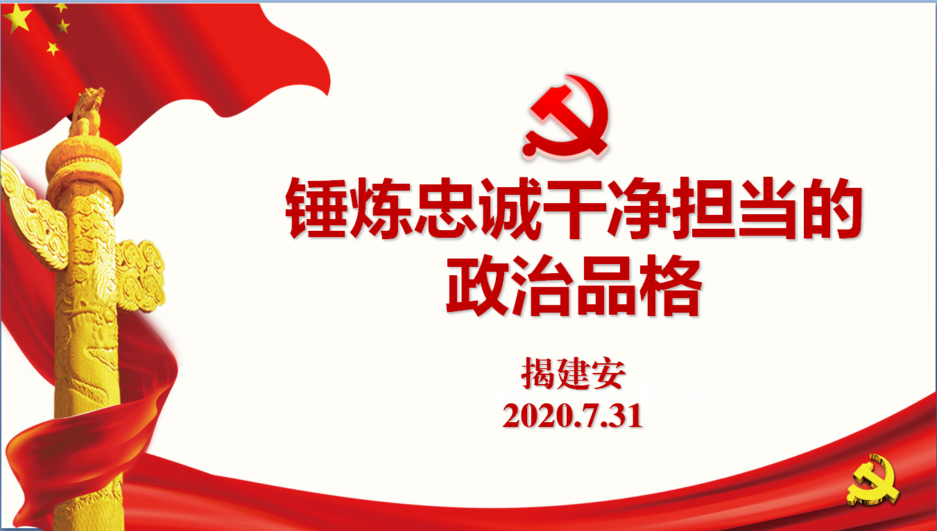 7月31日下午,所黨委委員揭建安副所長以“錘煉忠誠干凈擔當的政治品格”為主題,為檢測支部黨員上了一堂生動的專題黨課。